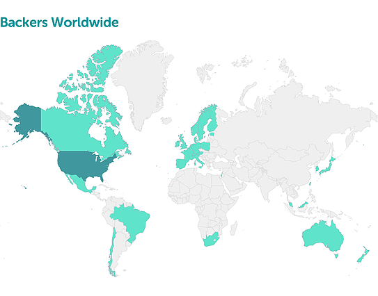 很高兴能看到我们的项目得到这么多来自世界各地的Backer的支持,其中大多数Backer来自美国和加拿大,但也有相当一部分来自澳大利亚、新西兰、西欧、巴西以及新加坡等国家。