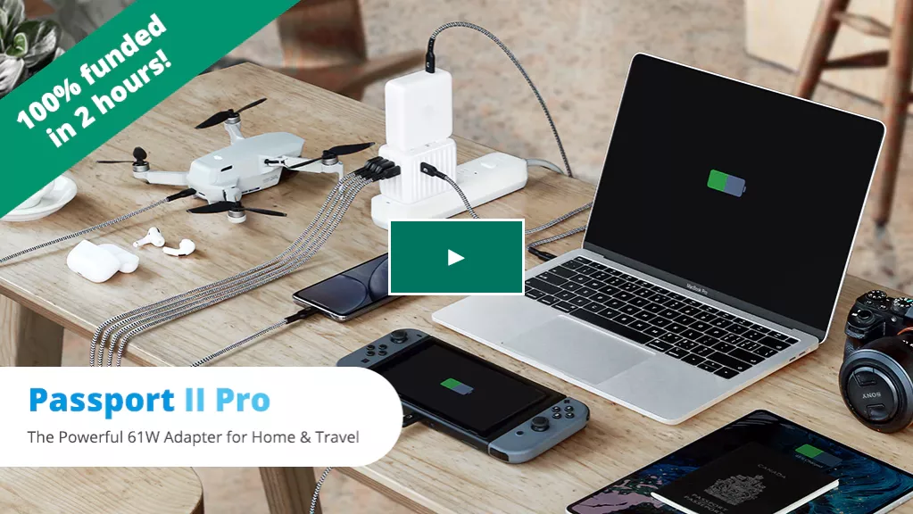 Passport II Pro配备5个USB端口(2个USB-C端口和3个USB-A端口)和一个多区域AC插座,可让你同时给6个电子设备充电,不需要为你各种设备携带几种不同的充电器。