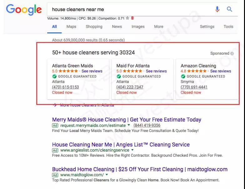 里面的版位能体现本土的特点,比如下图的例子,另外还有在谷歌地图上的广告,也是很能展示自己的本土特色。