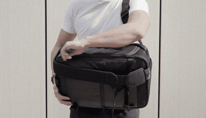 借助获得专利的双肩带转换背带的技术,可以快速从背包无缝过渡到斜背包或者单肩包;顶部的隔板随时随地立即变成笔记本电脑工作台,方便外出携带使用。