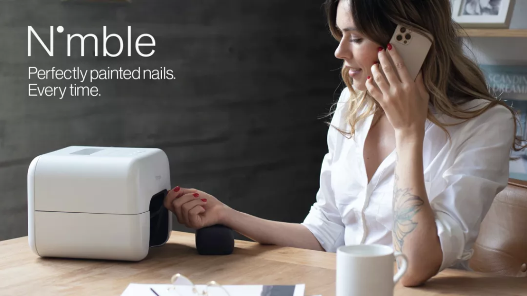 Nimble 将计算机视觉技术与人工智能、机械臂结合在一起,一个烤面包机大小的设备可在短短 10 分钟内就可以完成十个指头的美甲。用户在挑选好颜色后将甲油放入机器卡槽,再将一只手深入机器,按下开关,便可坐等美丽的指甲出炉了。