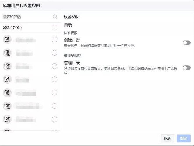 (三)在添加用户和设置权限的界面,添加相关用户权限,可以给相关用户创建广告或管理目录的权限,然后点击确定