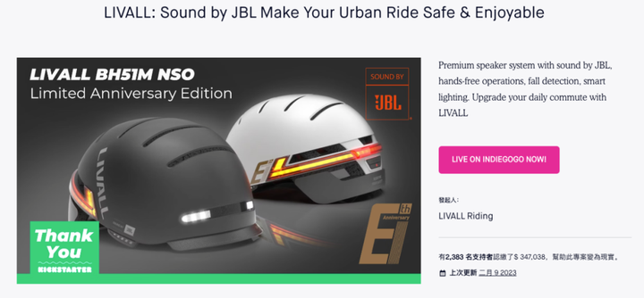 这是Kickstarter平台上第一个把智能灯光做进头盔里的项目,提到智能头盔Lumos Helmet应该是第一个去做智能头盔的品牌,在它之前都是不带电不带灯纯纯保护脑袋的头盔,这是15年Lumos Helmet做的第一个项目,设计非常简陋,外观设计也谈不上好看,但因为是Kickstarter最早做智能头盔的项目,解决了骑自行车的人没有刹车灯转向灯的痛点,所以做的还不错。