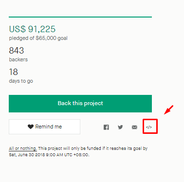 任何人都可以在自己的网站或博客中嵌入Kickstarter项目。这是一个很酷的功能,kickstarter也因此获得了很多的关注度。