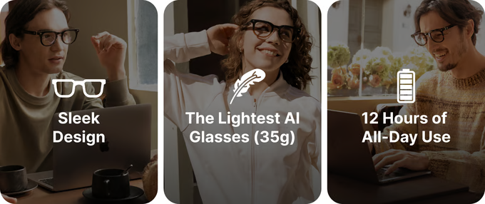 - 舒适性与外观:产品重量仅35克,外观时尚,适合长时间佩戴,解决了传统智能眼镜笨重、不舒适的问题;