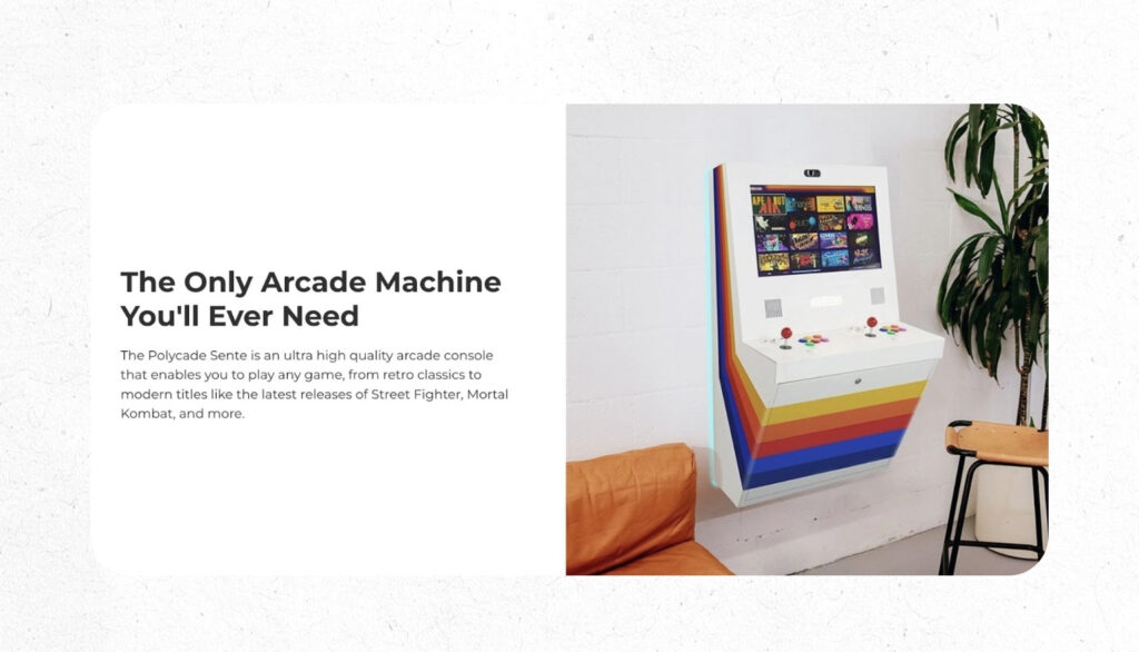 Polycade 利用这个框架制定了信息策略,这些信息贯穿于他的整个活动,包括广告、活动页面和着陆页面(如下所示),最终成功筹集了 1,658,958 美元。