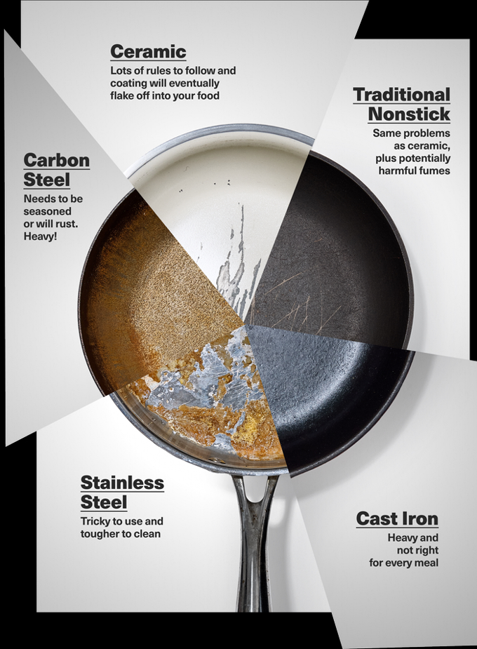 The Problem:详细列举各类锅具的缺点(如陶瓷锅涂层剥落、碳钢锅需调味、传统不粘锅释放毒气)。