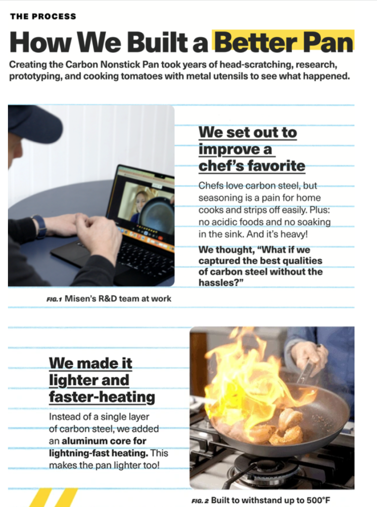 标题直接突出产品名,副标题 “Your pans have problems. We made something better.” 直击用户对现有锅具的不满,引发共鸣。
