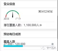 位于Ad set层级,可以根据预算来预估每日成效,一般覆盖人数处于绿色区间,太过具体和宽泛都不利于广告优化。