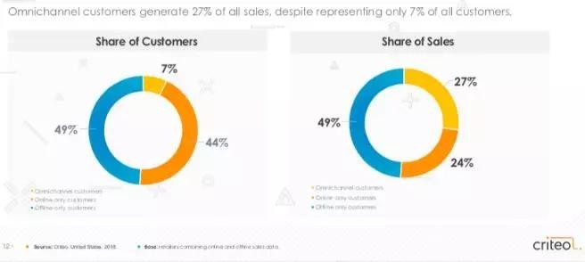 有趣的是,尽管全渠道客户具有高终身价值,但他们只占卖家所有客户的7%(如上图)。零售商需要以更个性化的方式瞄准的自己的理想受众,并提供最佳的购物体验。