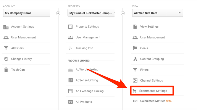 然后点击 Ecommerce Settings。