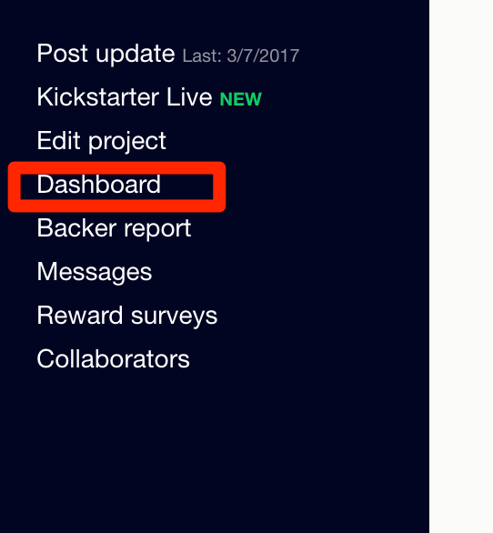 如果众筹项目已经发布,那进入项目页面,点击Dashboard。