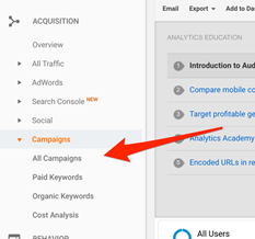返回谷歌分析帐号,通过Acquisition > Campaigns > All Campaigns就能找到追踪链接的所有数据了。