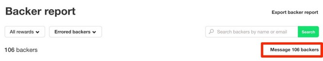 选中所有信用卡出错的Backer后,项目方便可以立即向他们发送信息。