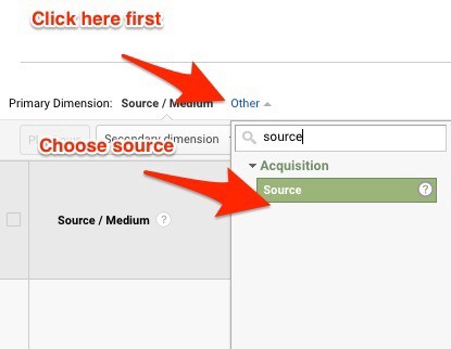 接着,点击 “other”,在下拉框里选择 “source”。注意,不是直接点击 “source/medium”。