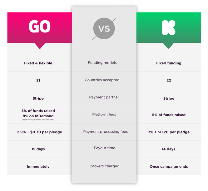 Kickstarter仅提供第一种固定Funding模式,这就是为什么它被称为“全有或全无”平台的原因。Indiegogo同时提供固定和灵活资助模式,您会看到大多数广告系列都选择了灵活模式。固定模式和灵活模式的费用结构没有区别,这就是为什么大多数Campaign创建者都选择灵活模式。
