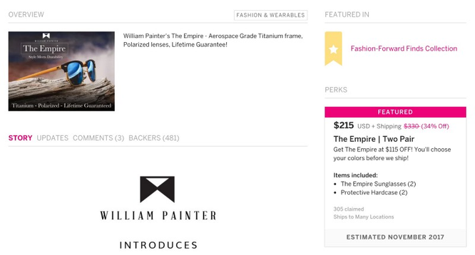 秘密优惠是Indiegogo上的一项福利,只有点击了专门的链接才能看到,这意味着在Indiegogo公开页面上不会出现秘密优惠。下面是帝国众筹项目在Indiegogo上给公众看的页面。